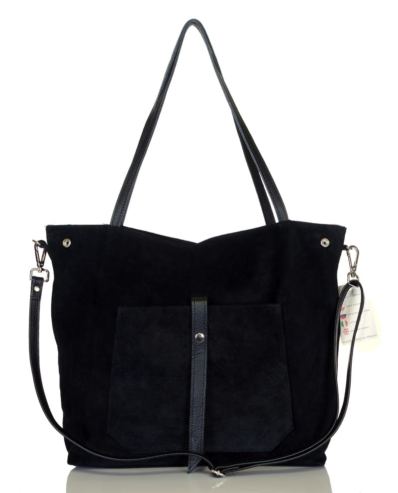 Włoski czarny zamszowy shopper SKÓRA