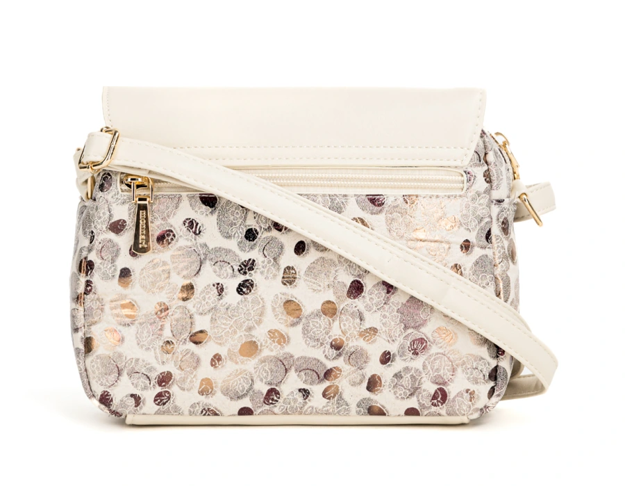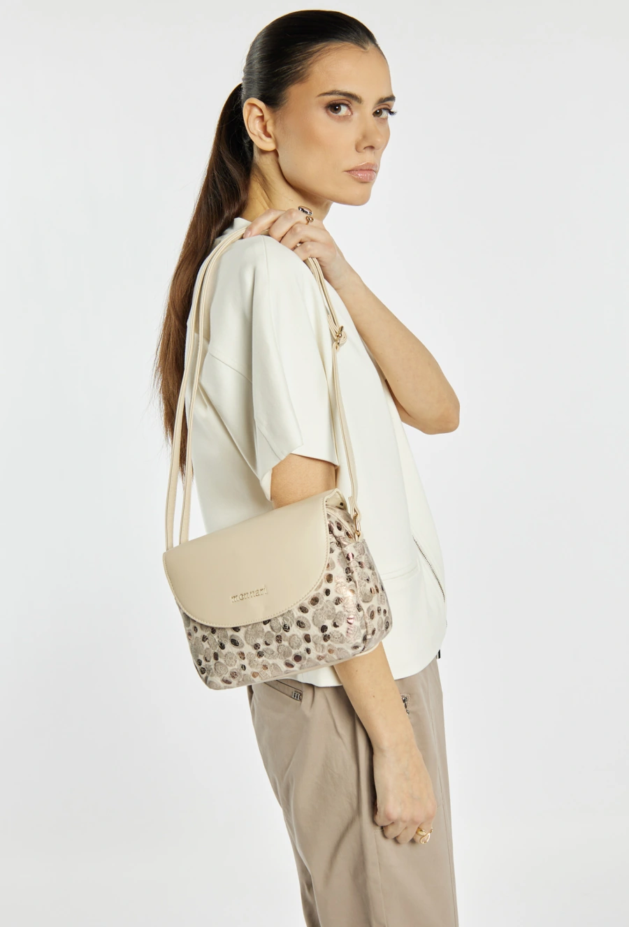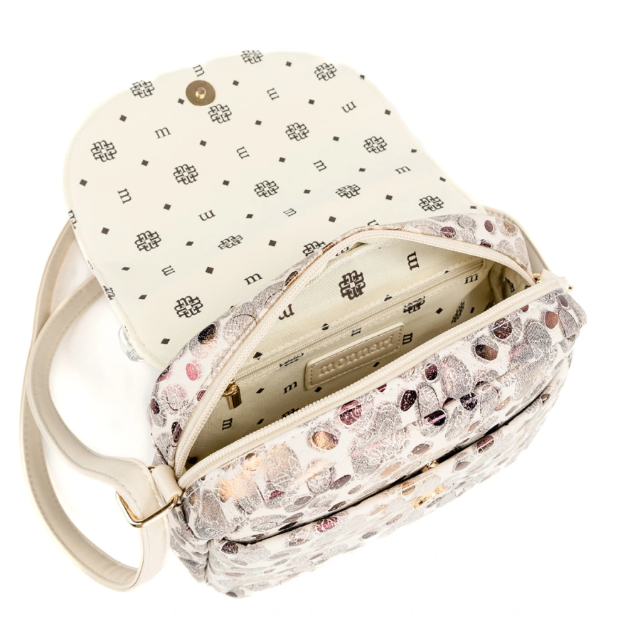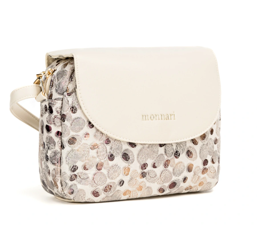 Wzorzysta Torebka Listonoszka MONNARI z Klapą – Mieniący się Materiał i Złote Detale