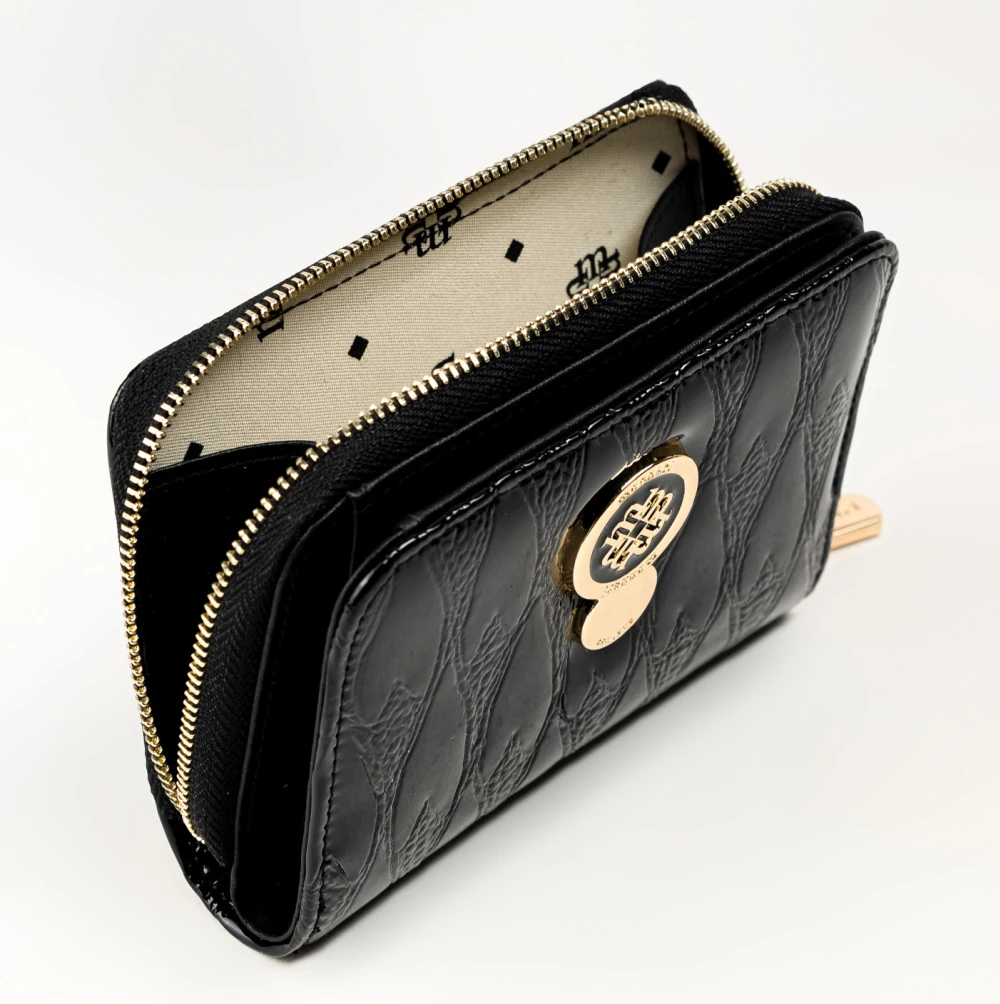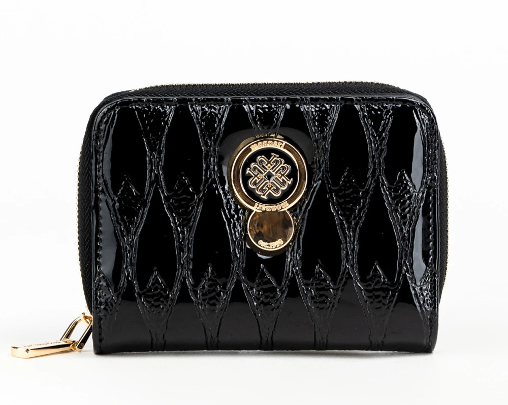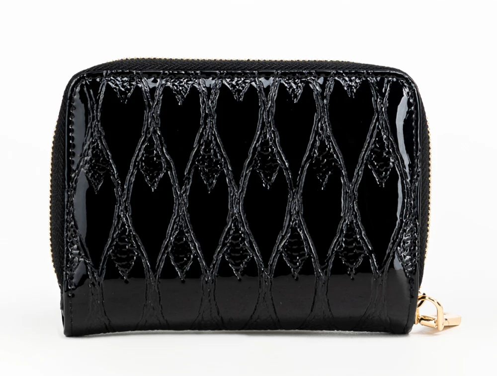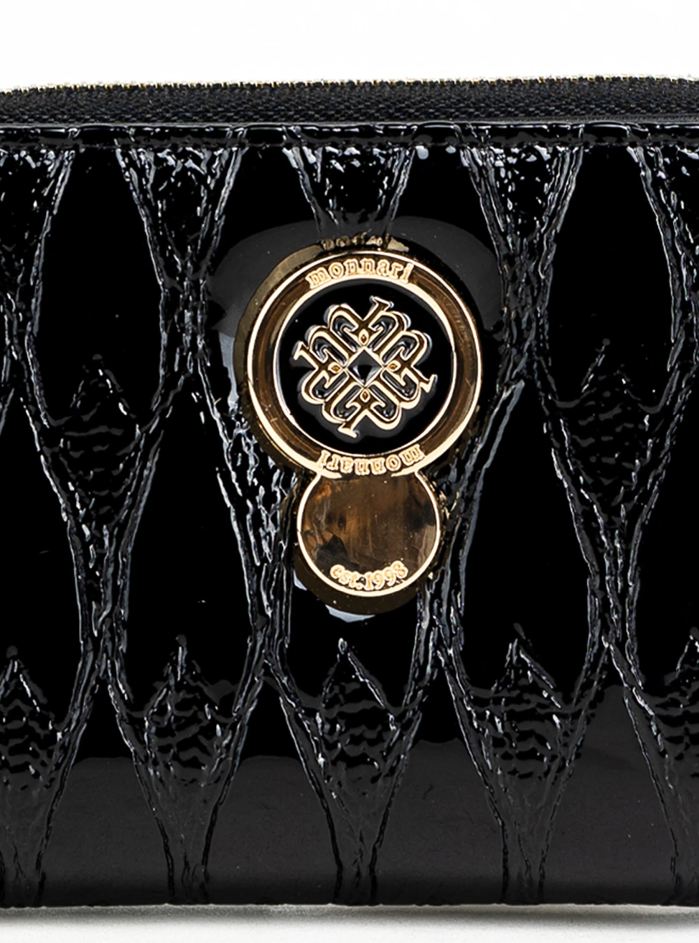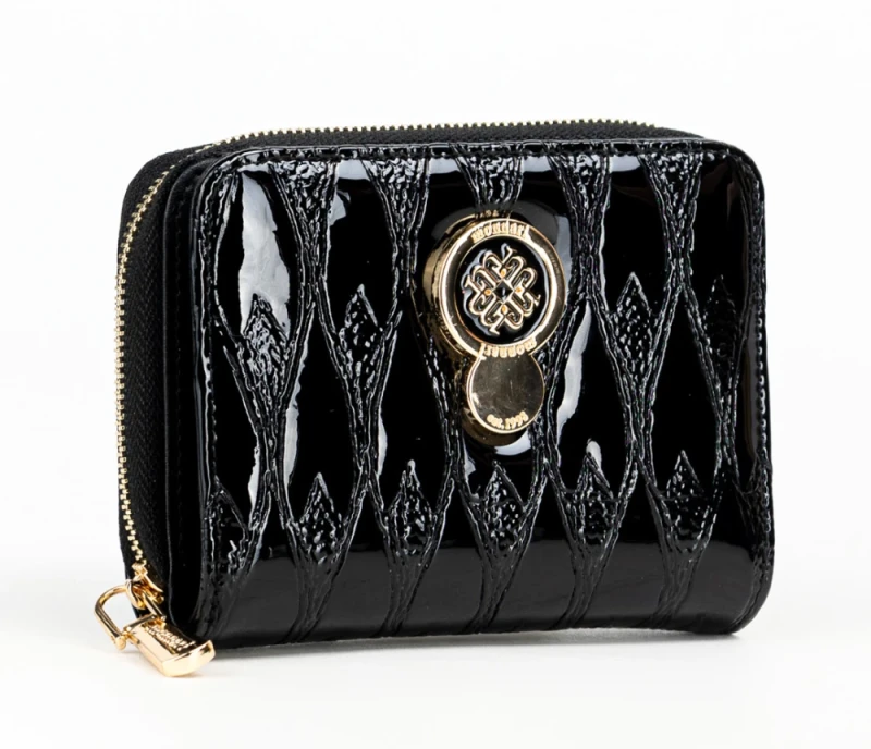 Zgrabny portfel damski skórzany Monnari czarny lakier skóra węża – elegancki i praktyczny