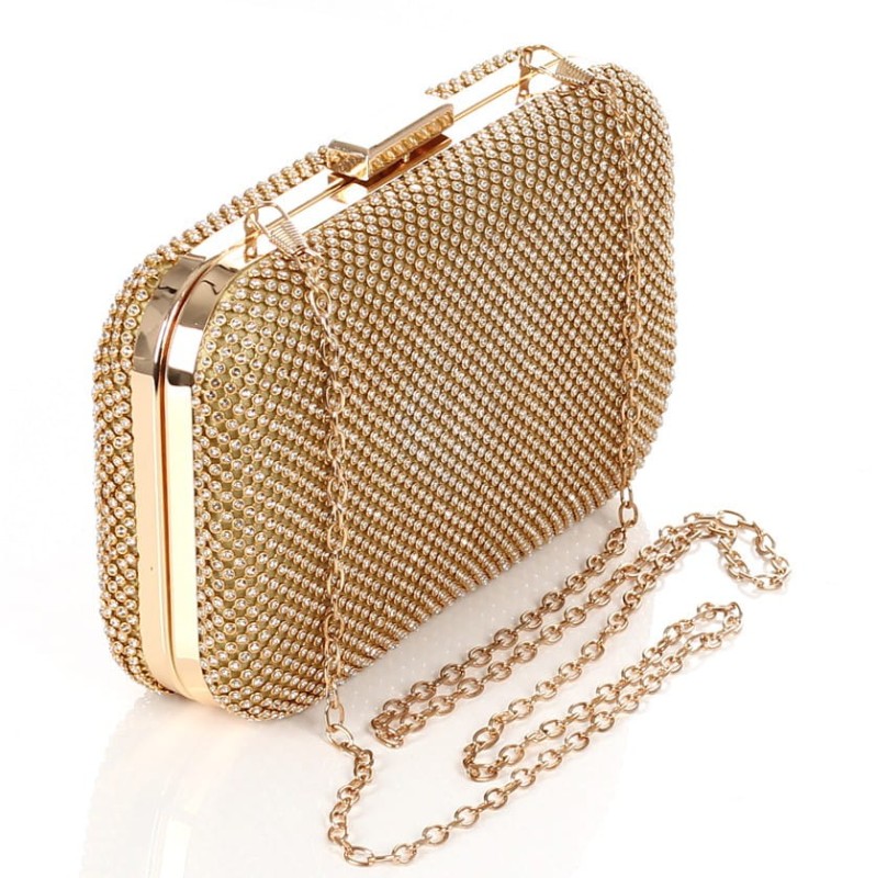 Złota kopertówka torebka wizytowa na łańcuszku Puzderko