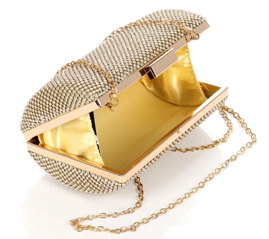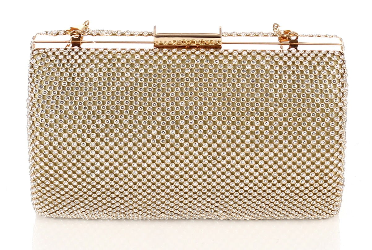Złota kopertówka torebka wizytowa na łańcuszku Puzderko
